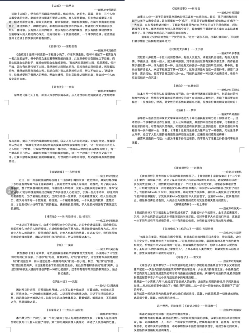 最美書評(píng)活動(dòng)是由同學(xué)們自發(fā)閱讀自己愛看、想看的書籍,并將自己關(guān)于書的體悟通過一小段文字表達(dá)出來。在比賽中,每個(gè)同學(xué)都踴躍參與,將自己愛看的書推薦給了大家,每一個(gè)書評(píng)的背后都是同學(xué)們對(duì)書自己獨(dú)到的見解。讓同學(xué)們可以在業(yè)余時(shí)間更好地享受生活,一壺茶、一本書,亦可以是一個(gè)悠閑的下午。