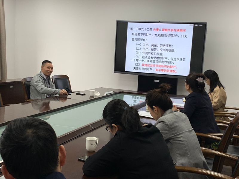 本次學習結(jié)合學院實際及職工需要,院黨委誠邀史良法學院沈旭紅老師,主要針對婚姻法中夫妻共同財產(chǎn)的認定及保護夫妻合法權(quán)益方面做了專項講座。此講座反響良好,有講、有問、有答,工會干部們邊聽講座邊向沈老師提問,沈老師也逐一解答了大家的問題。氣氛非常熱烈。大家一致認為,可以進一步擴大講座范圍,使更多的教職員工受益。