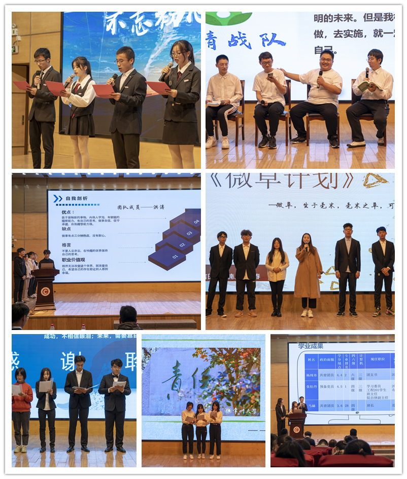 本次學(xué)業(yè)規(guī)劃大賽全校共29支團(tuán)隊(duì)報名參賽,通過初賽的選拔,共有10支隊(duì)伍進(jìn)入決賽。決賽由個人學(xué)業(yè)規(guī)劃講解以及小組才藝展示兩個部分組成,參賽選手結(jié)合PPT從自我認(rèn)識、學(xué)業(yè)規(guī)劃以及制定行動策略三個方面進(jìn)行闡述,深刻規(guī)劃剖析了自己隊(duì)伍及團(tuán)隊(duì)成員的優(yōu)劣勢,突出了隊(duì)伍特點(diǎn),指明了學(xué)業(yè)未來的努力方向。通過近三個小時的比賽,“未來工程隊(duì)”以生動流暢的演講以及合理的學(xué)業(yè)規(guī)劃設(shè)計獲得了本次比賽的一等獎;“星之隊(duì)”、“扶搖戰(zhàn)隊(duì)”獲得二等獎;“走千山戰(zhàn)隊(duì)”、“晚晴戰(zhàn)隊(duì)”、“微草戰(zhàn)隊(duì)”獲得三等獎、“智聯(lián)戰(zhàn)隊(duì)”、“螢火戰(zhàn)隊(duì)”、“細(xì)雨戰(zhàn)隊(duì)”、“鳴海戰(zhàn)隊(duì)”獲得優(yōu)勝獎。