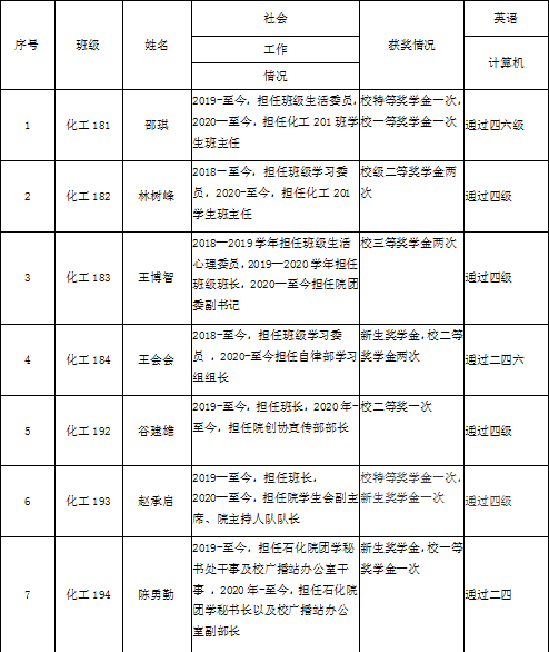 根據(jù)我校發(fā)展學(xué)生黨員公示制的有關(guān)規(guī)定,經(jīng)石油化工學(xué)院食品學(xué)院第一學(xué)生黨支部討論決定和石油化工學(xué)院食品學(xué)院黨委審議,擬發(fā)展下列同志為中共預(yù)備黨員?,F(xiàn)將基本情況公示如下: