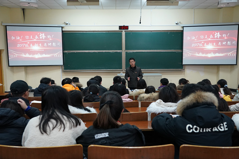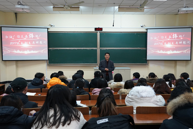 為堅定學生的考研信念,增強考研自信心,積極面對考研,緩解考研壓力,12月8日,我院在W7召開了2017級本科生考研慰問會,參加會議的有院黨委書記吳荷平、院長陳海群、副書記宣慧、副院長劉文杰、黃海、院關(guān)工委代表繆鳳仙、學院本科生輔導(dǎo)員以及2017級考研學子。