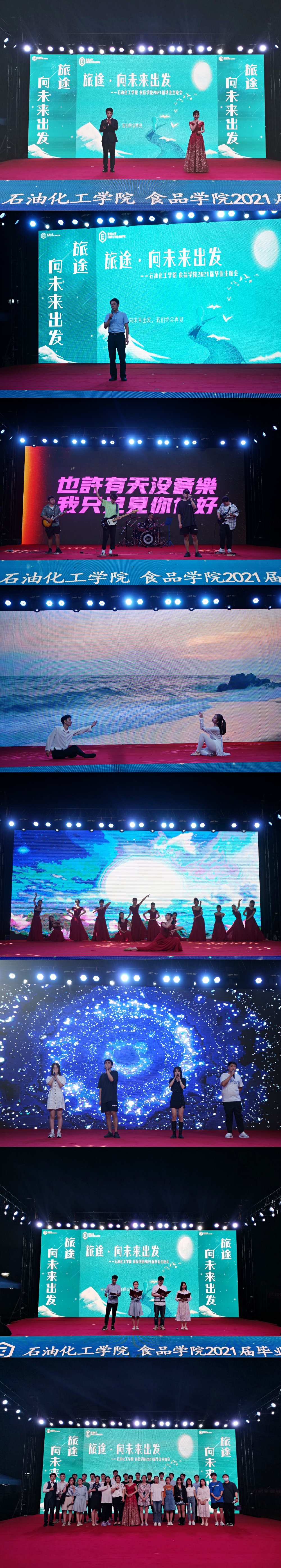 6月10日18:00,由石油化工學(xué)院 食品學(xué)院主辦、21屆畢業(yè)班承辦、學(xué)生會協(xié)辦的2021屆畢業(yè)生晚會在水月廣場上演。院黨委書記吳荷平、院黨委副書記宣慧、副院長黃海、各專業(yè)老師們、輔導(dǎo)員們以及畢業(yè)班學(xué)生觀看了晚會。