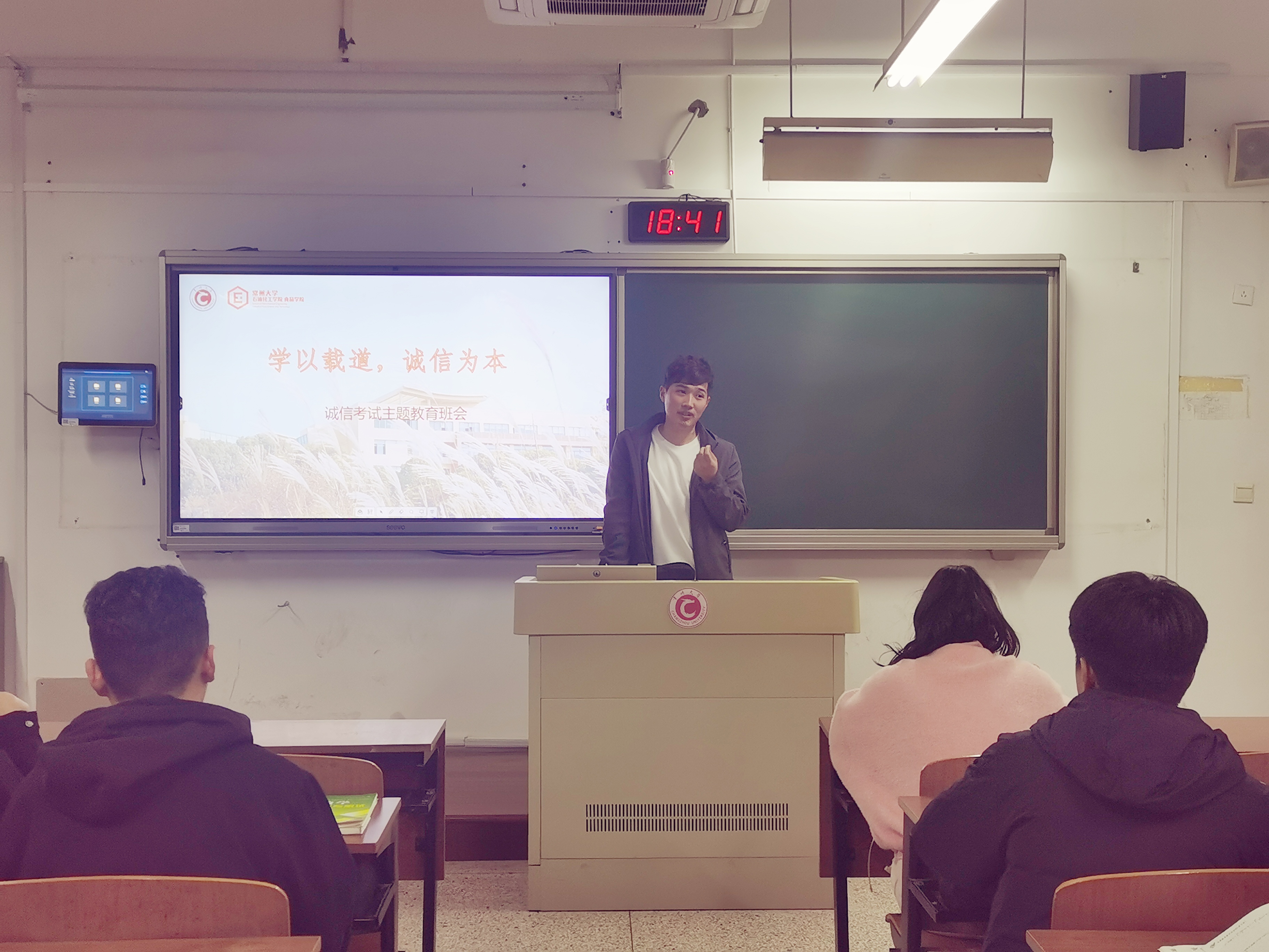 誠實守信是中華民族的傳統(tǒng)美德,也是衡量一個人品德修養(yǎng)和人格高下的重要標準之一,同時也是一名優(yōu)秀大學生必不可少的基本素質。為進一步弘揚誠信文化,倡導誠信行為,培養(yǎng)誠信品格,嚴正學風考風,在英語四六級和期末考試即將到來之際,我院積極組織各班級開展誠信考試主題班會活動。
