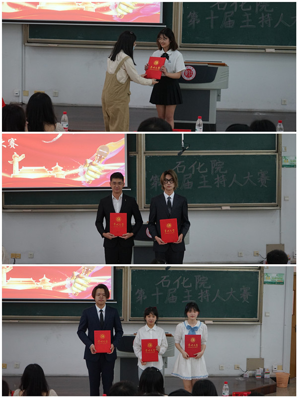 經(jīng)過前期初賽選拔,共六位選手進入本次決賽。他們以不同的主題侃侃而談:應(yīng)化212陳閆明宇通過《青年大學習家鄉(xiāng)特別版》帶大家認識自己的家鄉(xiāng),美麗的海濱城市、浪漫之都——大連;能化211蔡伽豪將老一輩共產(chǎn)黨員為建設(shè)中國共產(chǎn)黨的努力展現(xiàn)得淋漓盡致,希望當代青年不斷增強“守初心、擔使命”的思想意識和行動自覺;作為美食主播,能化212張厚盛通過《舌尖上的美味——廣西篇》呈現(xiàn)給大家有著飲食王國的美譽的中國美食文化;化工215郭慧慧帶大家認識了一位網(wǎng)紅,她將讀書之氣帶給我們,點點星火傳出了她自己的光芒;食品211李欣宇基于《送你一朵小紅花》這部電影,倡導(dǎo)愛與珍惜;化工214李芝穎由藝術(shù)鑒賞帶大家走進故事背后的真相,了解一段有關(guān)中國文化征服西方世界的長達八百年的歷史。在即興評述的環(huán)節(jié),六位選手現(xiàn)場抽取自己的主題,以優(yōu)秀的表現(xiàn)、沉穩(wěn)的心態(tài)充分展示自己的主持功底。最終,化工215郭慧慧榮獲一等獎;能化212張厚盛、應(yīng)化212陳閆明宇榮獲二等獎;能化211蔡伽豪、食品211李欣宇、化工214李芝穎榮獲三等獎。