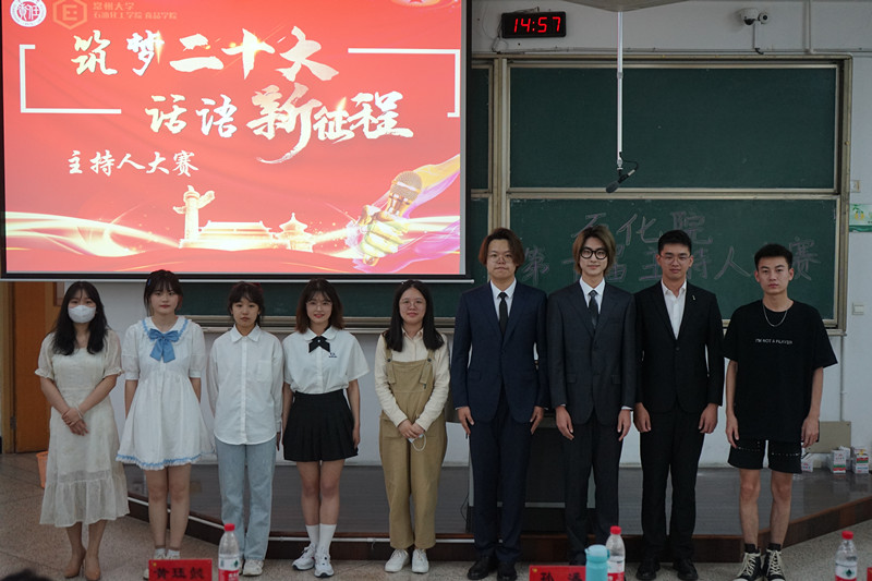 為了培養(yǎng)同學們的口頭表達能力,促進校園文化發(fā)展,豐富疫情期間在校學生的校園生活,5月20日,我院于W17階梯教室舉辦第十屆主持人大賽,特邀院團委書記孫潘老師、院團委副書記許涵僑、院學生會主席郭子航、大藝團團長陳海璐、材料院主持人隊隊長黃玨懿、藥學院主持人隊隊員竇潤鐳擔任評委,由郭祺、張連峰主持。