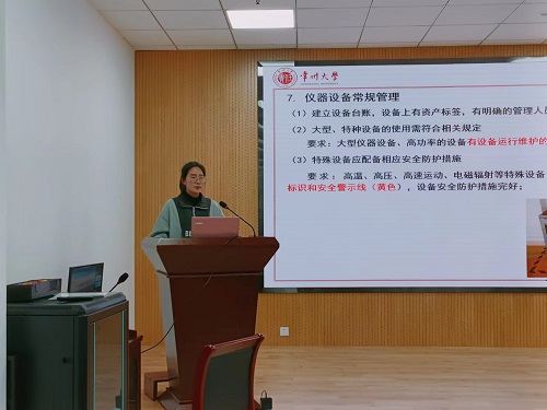 會上,董亞云對實驗室基礎安全知識和規(guī)章制度進行宣講,介紹實驗室安全檢查工作安排,同時與聯(lián)絡員積極進行互動交流,了解實驗室安全管理現(xiàn)狀,為參會人員答疑解惑。趙彩霞提出,要推動實驗室安全教育常態(tài)化與長效化,促進研究生養(yǎng)成科學規(guī)范的實驗操作習慣,提高研究生科研素養(yǎng),為順利開展學術創(chuàng)新研究奠定堅實基礎。