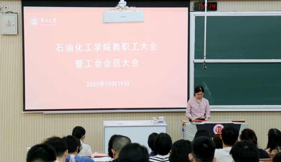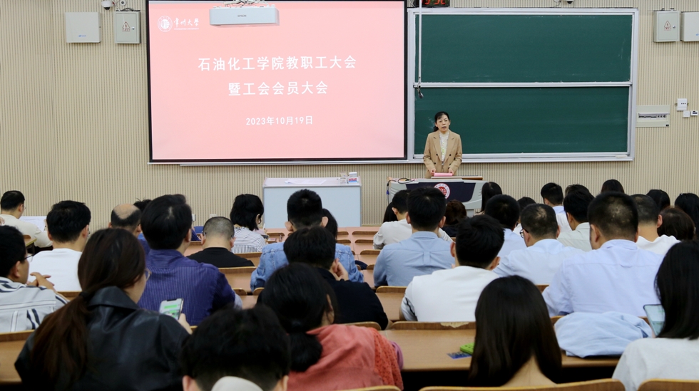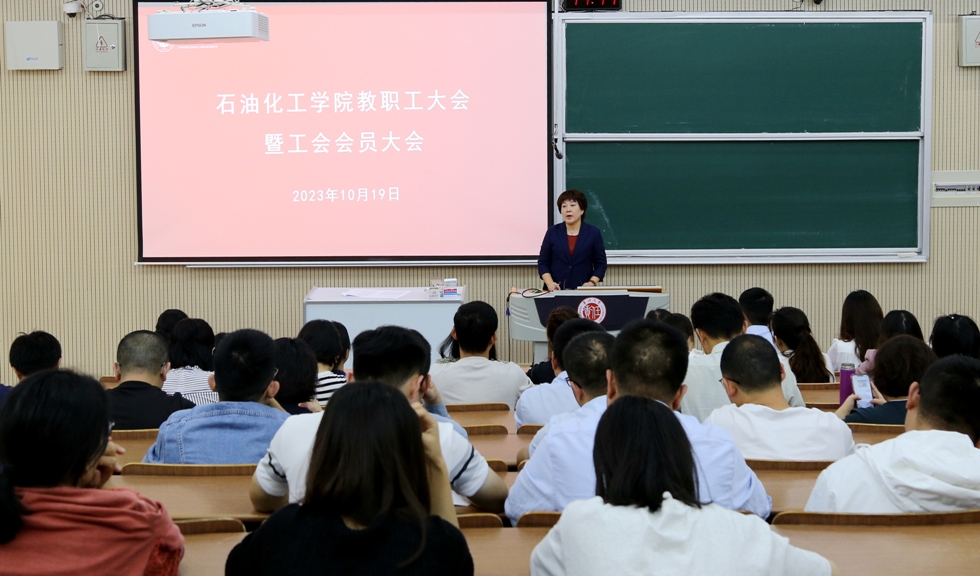 2023年10月19日下午,石油化工學(xué)院在教學(xué)樓W9階召開2023年教職工大會暨學(xué)院工會會員大會,學(xué)院黨政領(lǐng)導(dǎo)、分工會主席以及全體教職工參加會議,黨委副書記劉茂燦主持會議。