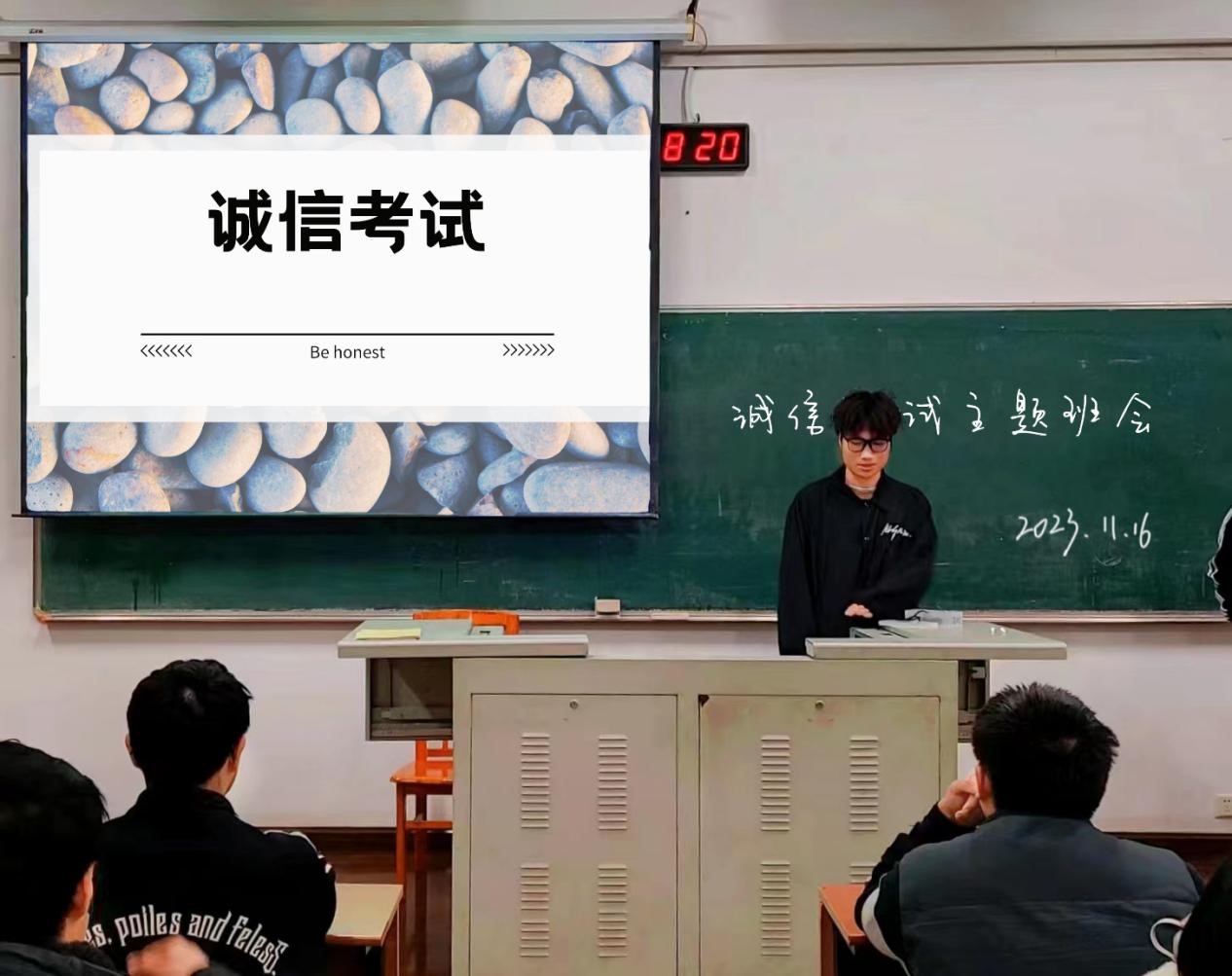 班會中,輔導(dǎo)員和班主任帶領(lǐng)學(xué)生學(xué)習(xí)學(xué)生手冊中關(guān)于誠信考試的相關(guān)內(nèi)容,指出考場作弊的發(fā)生很大部分源于功利心理、僥幸心理等不正確考試心理的影響,為學(xué)生敲響警鐘。同時強(qiáng)調(diào)英語四六級和期末考試的重要性,呼吁學(xué)生充分認(rèn)識開展誠信教育的重要性和必要性,培養(yǎng)自覺遵守考試紀(jì)律、抵制違法違紀(jì)行為的良好習(xí)慣,自覺維護(hù)各類考試的權(quán)威性和公信力。