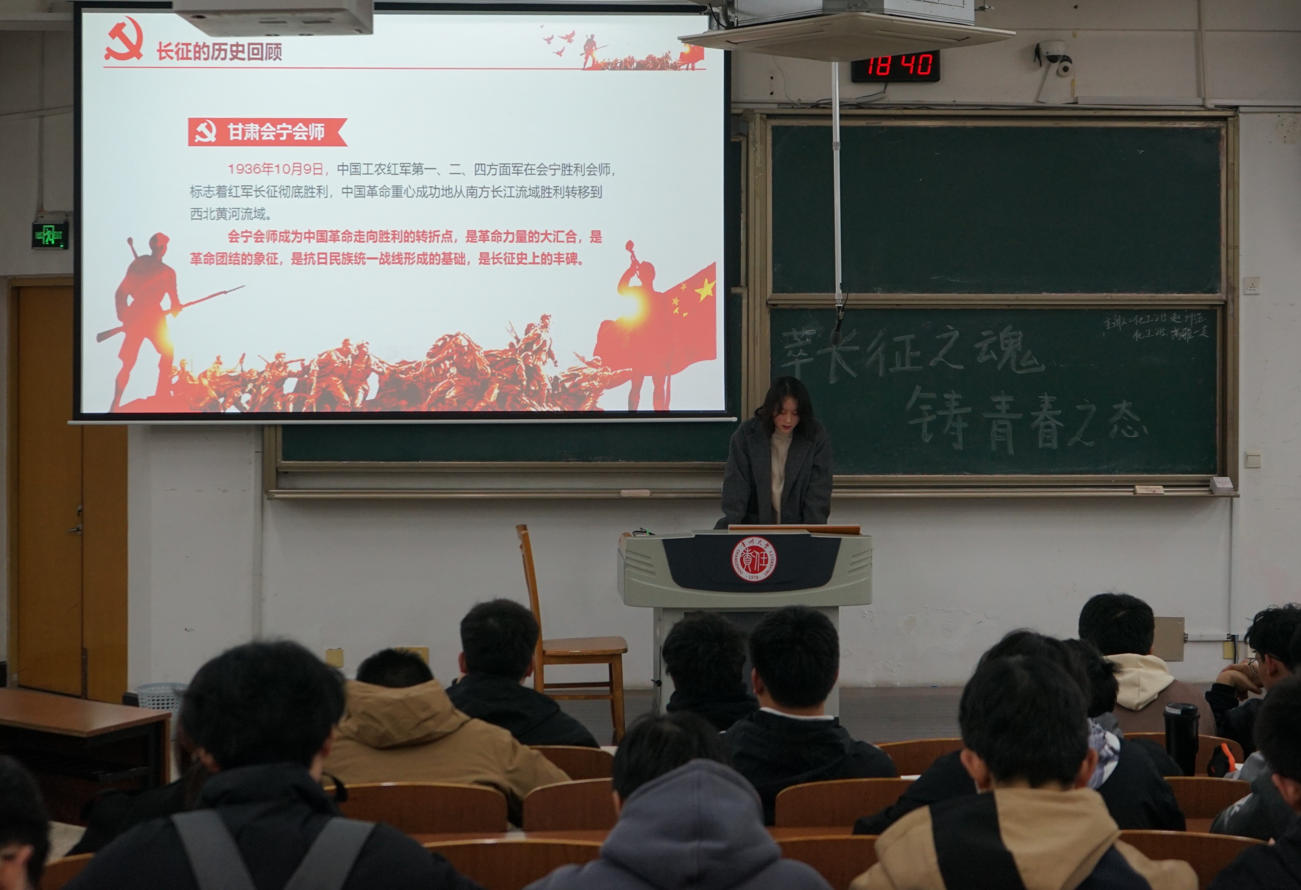 為弘揚黨的優(yōu)良傳統(tǒng)和精神財富,增強民族凝聚力和自豪感,我院于3月27日18:30在W15階教舉辦“青年講師團”系列講座——“萃長征之魂,鑄青春之態(tài)”。本次講座由我院學生第一黨支部黨員趙坤范、高雅一美主講,各年級學生代表參加。