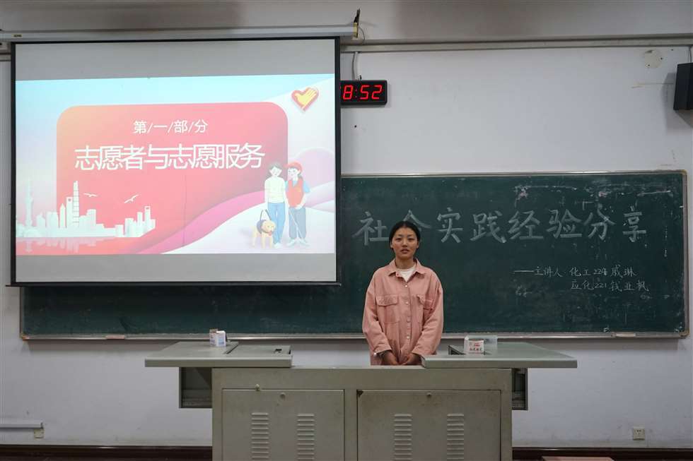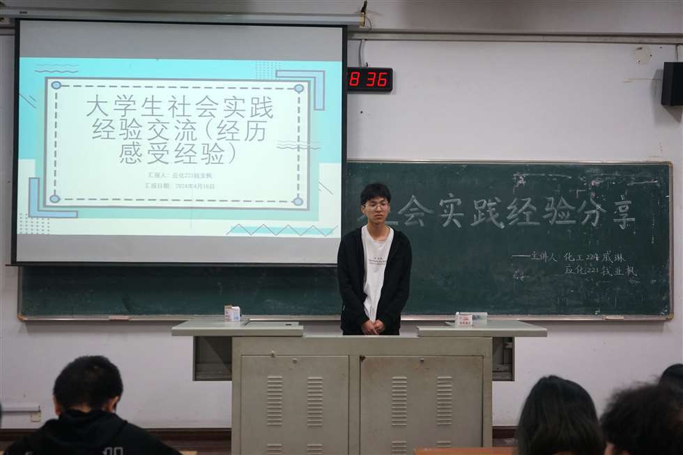 為增進(jìn)學(xué)生對(duì)于社會(huì)實(shí)踐的了解,激發(fā)學(xué)生的社會(huì)實(shí)踐熱情,營造學(xué)院學(xué)生積極參與社會(huì)實(shí)踐的氛圍,我院于4月16日在w1201舉辦“石化青年說”系列講座——社會(huì)實(shí)踐經(jīng)驗(yàn)交流。本次講座由化工224班戚琳、應(yīng)化221班錢亞楓主講,各年級(jí)學(xué)生代表參加。