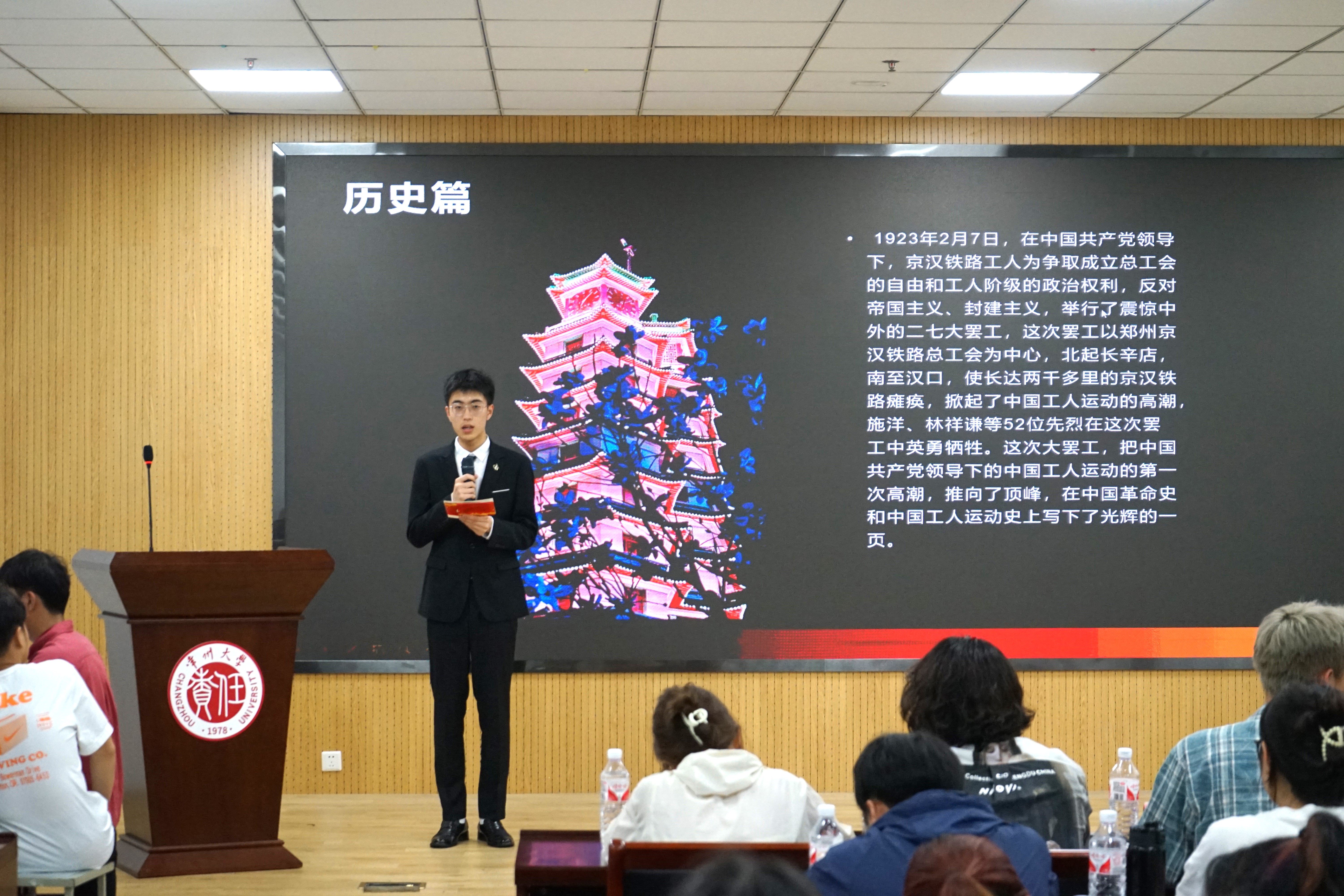 為展現(xiàn)大學(xué)生青春朝氣,提高大學(xué)生藝術(shù)素養(yǎng),我院于2024年5月20日在常東區(qū)測(cè)試樓B座109開(kāi)展“‘主’紅色文化,‘持’經(jīng)典傳承”常州大學(xué)石油化工學(xué)院第十二屆主持人大賽決賽,本次比賽由常州大學(xué)主持人隊(duì)隊(duì)長(zhǎng)竇潤(rùn)鐳、常州大學(xué)樓蘭劇團(tuán)團(tuán)長(zhǎng)楊鼎立、石化院團(tuán)委副書(shū)記趙也慈、周袁心儀、石油化工學(xué)院學(xué)生會(huì)執(zhí)行主席付嘉樂(lè)、趙坤范、往屆主持人隊(duì)隊(duì)長(zhǎng)郭慧慧、蔡伽豪擔(dān)任評(píng)委,各年級(jí)學(xué)生前往觀賽。