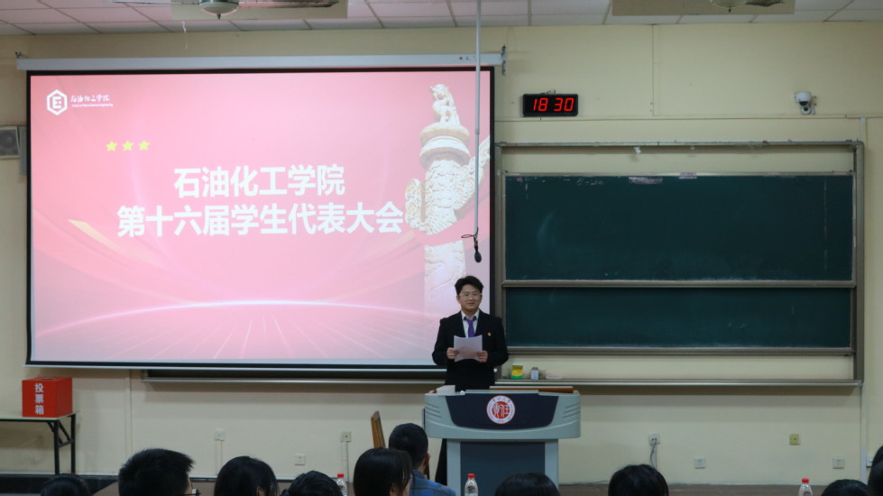 10月28日,常州大學(xué)石油化工學(xué)院第十六次學(xué)生代表大會(huì)及第五次研究生代表大會(huì)分別在w5和測(cè)試樓B109報(bào)告廳召開,本次會(huì)議由院學(xué)生會(huì)執(zhí)行主席朱一飛、院研究生會(huì)文體部部長(zhǎng)黃宇凱主持,院黨委副書記劉國(guó)仕、輔導(dǎo)員孫潘、何瑞玉、趙彩霞、吳林、劉爽及各班學(xué)生代表參加。