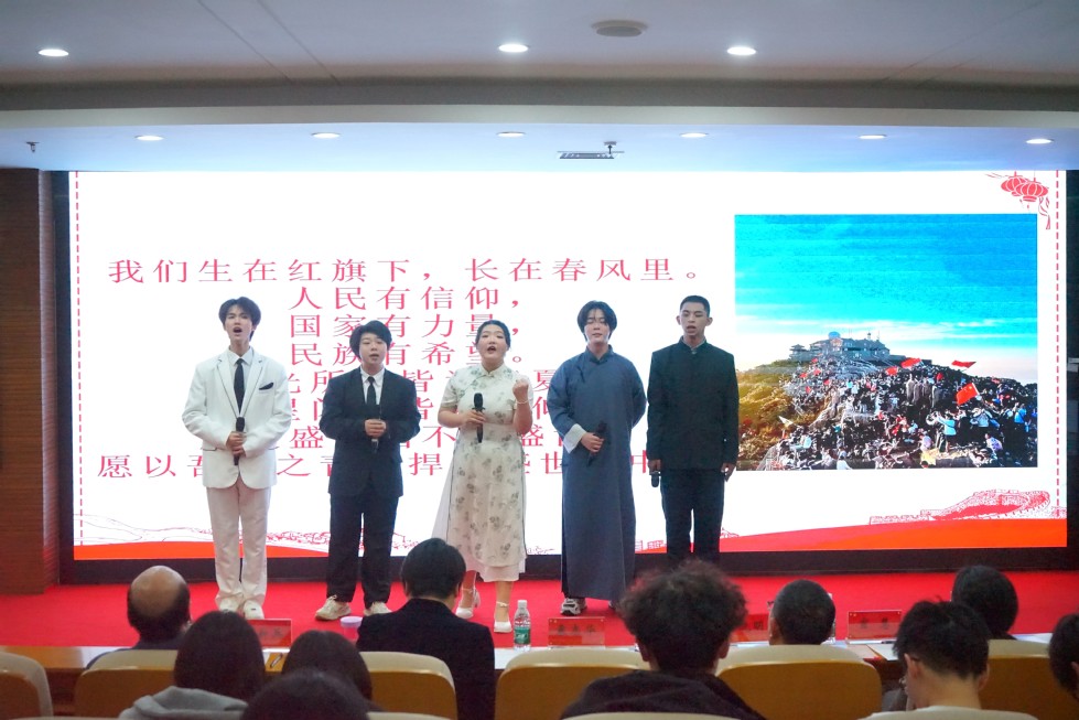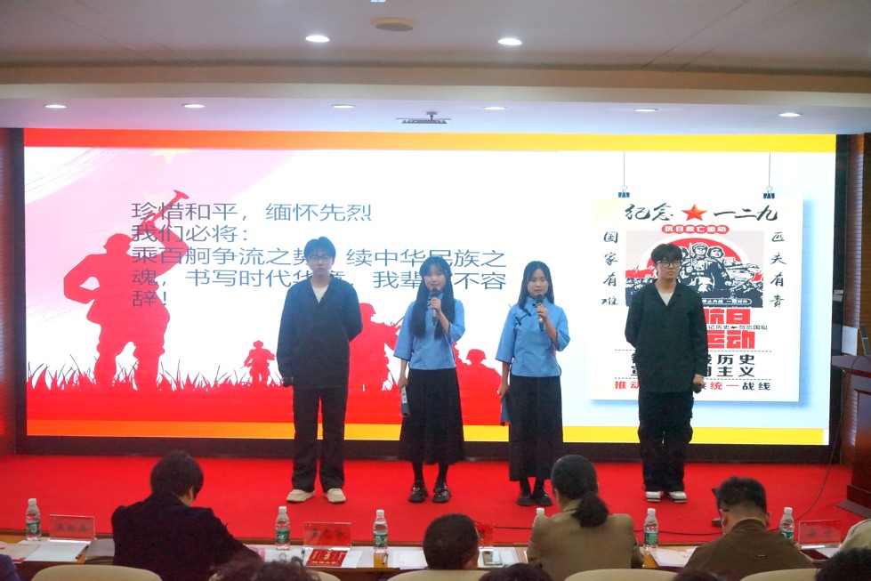 全校共44支隊伍參加本次比賽,經(jīng)初賽選拔,最終12支隊伍脫穎而出進(jìn)入決賽。各組選手以多元化的形式,從不同角度切入主題,講述了黃文秀女士、秋瑾女士、劉伯承先生等先烈的故事,贊揚(yáng)了眾多勤勉為民、無私奉獻(xiàn)的英雄豪杰。他們通過精彩的演繹,重現(xiàn)護(hù)國佑民的歷史場景,表達(dá)了對先輩精神的致敬與傳承,闡釋了“鑄牢民族之魂,凝聚青春力量”的文化深意,發(fā)出鏗鏘有力的時代之聲,現(xiàn)場觀眾感同身受。