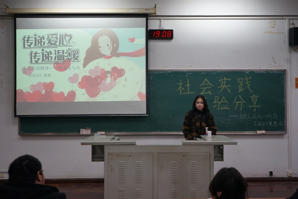 為了增強學生對社會實踐的興趣,培養(yǎng)學生無私奉獻、關(guān)愛他人的精神,我院于11月19日在W1209開展“石化青年說”系列講座第三講——社會實踐經(jīng)驗分享。本次講座由應化221楊蔚、應化231黃思雨主講,我院學生代表參加。