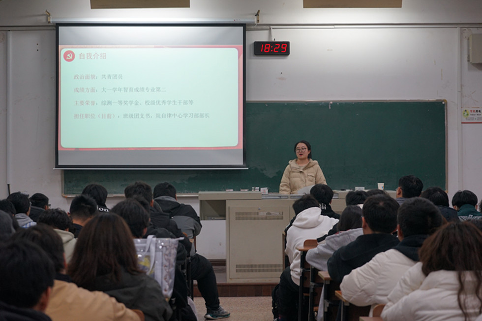 吳雨桐和郭怡溪系統(tǒng)地闡述了團(tuán)內(nèi)評(píng)優(yōu)體系,涵蓋各類評(píng)優(yōu)項(xiàng)目的標(biāo)準(zhǔn)與要求。在分享團(tuán)干經(jīng)驗(yàn)時(shí),她們以自身經(jīng)歷為例,講述如何管理支部日常運(yùn)營、發(fā)布PU活動(dòng)等工作。最后,她們結(jié)合自己的學(xué)習(xí)、工作和社會(huì)實(shí)踐經(jīng)歷,分享了如何在團(tuán)內(nèi)活動(dòng)中發(fā)揮先鋒模范作用、如何在學(xué)業(yè)上保持優(yōu)異成績、如何在志愿服務(wù)中踐行社會(huì)責(zé)任的心得體會(huì),同學(xué)們紛紛表示受益匪淺。