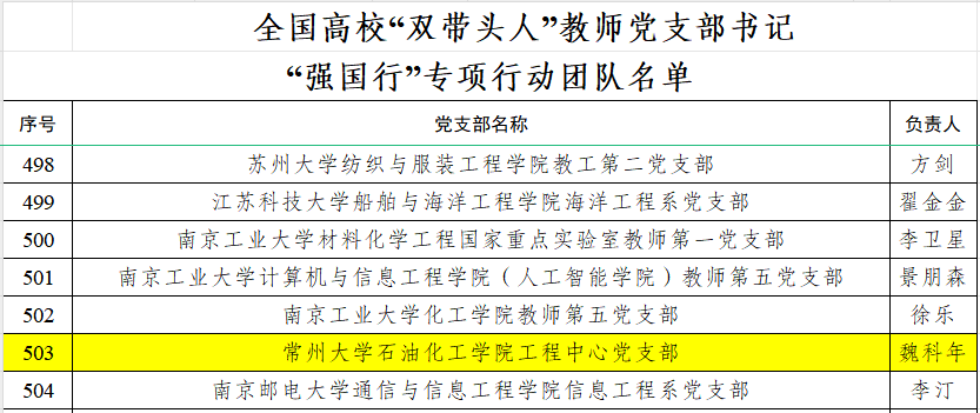 近日,教育部辦公廳、省委教育工委分別公布了全國(guó)、全省高?!半p帶頭人”教師黨支部書(shū)記“強(qiáng)國(guó)行”專(zhuān)項(xiàng)行動(dòng)團(tuán)隊(duì)名單。我校石油化工學(xué)院工程中心黨支部成功入選全國(guó)高?!半p帶頭人”教師黨支部書(shū)記“強(qiáng)國(guó)行”專(zhuān)項(xiàng)行動(dòng)團(tuán)隊(duì)。