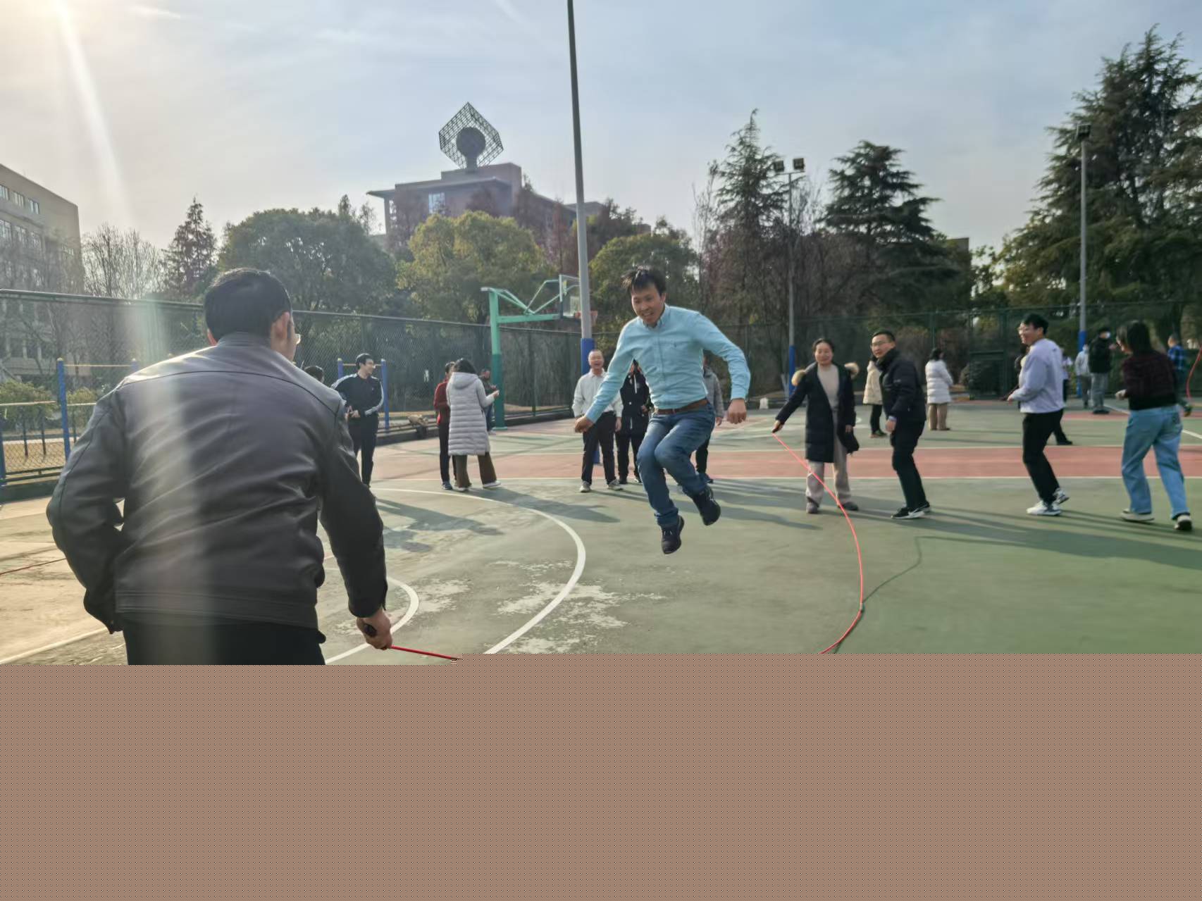 為豐富教職工校園文化生活,凝聚團結奮進力量,2025年1月9日下午,我院分工會舉辦了“躍動健康 ‘繩’采飛揚”教職工跳長繩比賽,我院50多名教職工參加了此次活動。