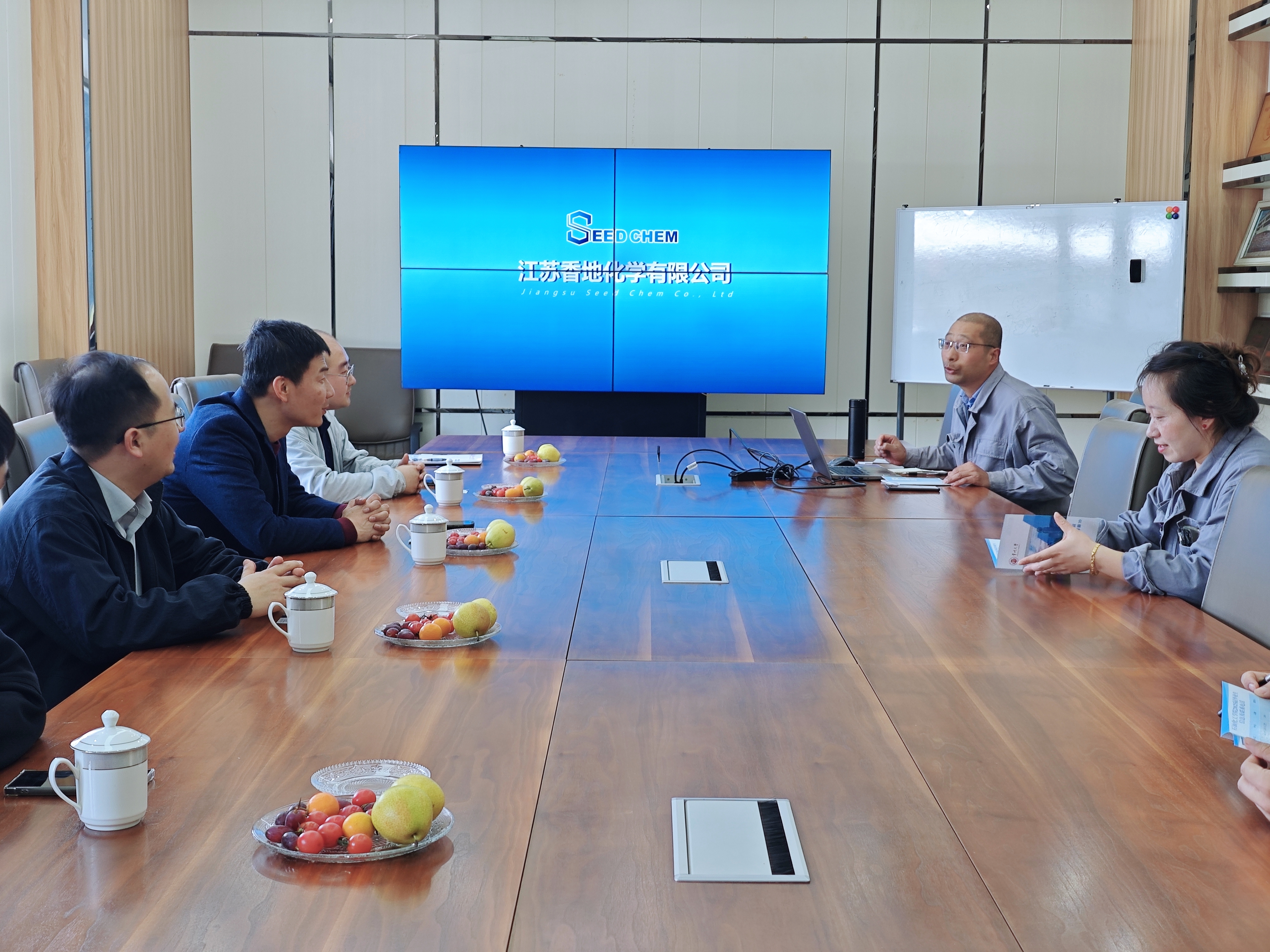 邢瑋對石化學(xué)院來訪一行表示熱烈的歡迎。在邢瑋的協(xié)調(diào)下,先后與江蘇禾本生化有限公司、江蘇香地化學(xué)有限公司、順毅南通化工有限公司、南通泰禾化工股份有限公司、江蘇亞泰化工有限公司開展座談交流。座談會上各公司代表分別介紹了公司的成長軌跡、產(chǎn)業(yè)規(guī)模和人才需求,回顧了近年來和石油化工學(xué)院的交流合作,并對我院畢業(yè)生的工作能力給與了高度評價。會上,劉國仕介紹了學(xué)院2025屆畢業(yè)生培養(yǎng)情況,并就企業(yè)高管進校園、學(xué)生實習(xí)實踐等方面與企業(yè)進行了深入探討。