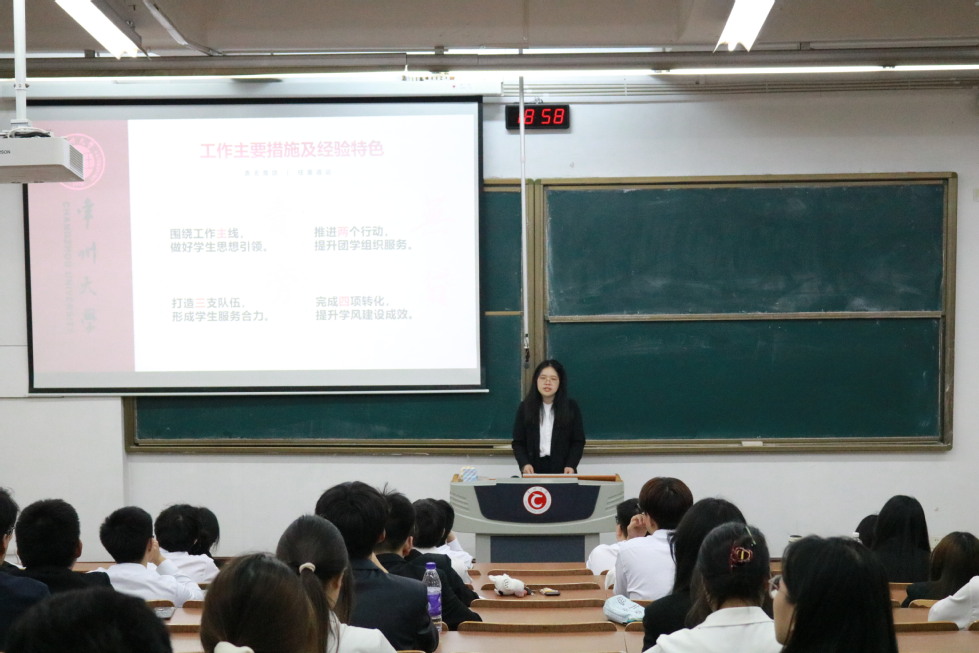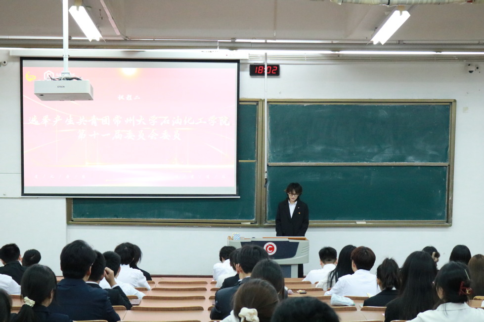 為進(jìn)一步增強(qiáng)團(tuán)員青年的責(zé)任擔(dān)當(dāng),厚植團(tuán)員意識,使團(tuán)組織在推動學(xué)校發(fā)展、助力校園建設(shè)的進(jìn)程中,更有力地發(fā)揮生力軍與突擊隊(duì)效能,4月9日18點(diǎn)我院于W12階教召開共青團(tuán)常州大學(xué)石油化工學(xué)院第十一次代表大會。會議由我院學(xué)生會執(zhí)行主席魏雨主持。