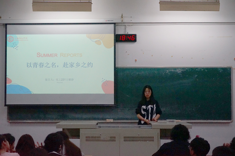 為展示返鄉(xiāng)宣傳成果,體現(xiàn)青春活力,我院于4月22日在W1206教室開展“石化青年說”系列講座第三講——以青春之名,赴家鄉(xiāng)之約。本次講座由化工231王雅靜和能化221董倚帆主講,我院學(xué)生代表參加。