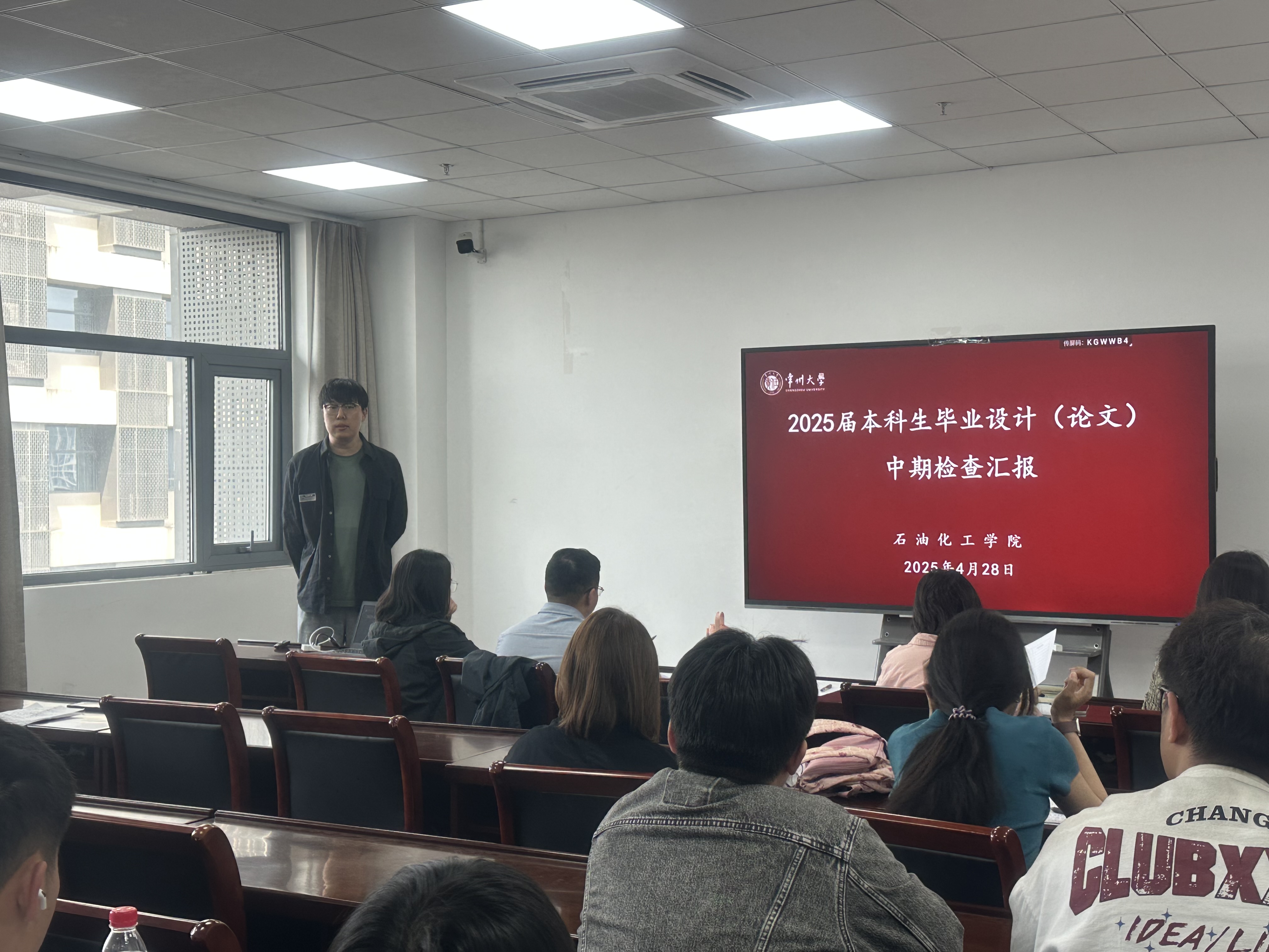 為進(jìn)一步提高本科生畢業(yè)設(shè)計(jì)(論文)質(zhì)量,規(guī)范人才培養(yǎng)過程考核,2025年4月28日,我院在測試樓B617組織開展2025屆本科畢業(yè)設(shè)計(jì)(論文)中期檢查匯報(bào)答辯工作,學(xué)院24名畢業(yè)生代表和5位評委老師參加了匯報(bào)會,會議由化工教研室主任石劍老師主持。