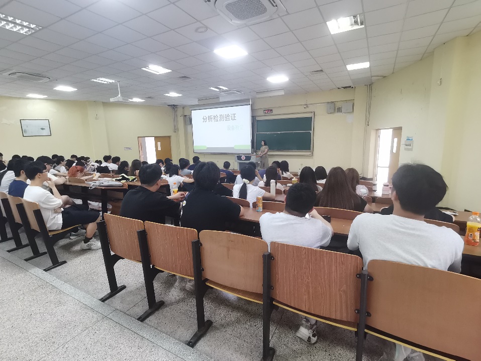 5月22日下午在主樓階教W1,江蘇飛凡檢測(cè)認(rèn)證有限公司高級(jí)工程師秦水平受邀為應(yīng)用化學(xué)專業(yè)2022級(jí)本科生授課,這是我校深化產(chǎn)教融合課程改革的重要實(shí)踐。