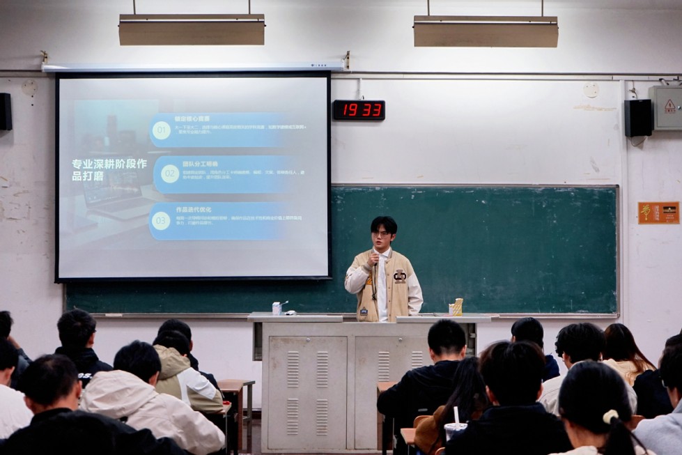 兩位同學(xué)從學(xué)業(yè)、競(jìng)賽、實(shí)踐三者的平衡關(guān)系入手,針對(duì)新生普遍存在的“迷茫期”問(wèn)題,提出了貫穿大學(xué)四年的分階段規(guī)劃建議。鼓勵(lì)新生做好學(xué)業(yè)規(guī)劃,勇于爭(zhēng)先。本次講座為同學(xué)們提供了豐富的經(jīng)驗(yàn)參考與實(shí)用的方法指導(dǎo),有助于大家進(jìn)一步明確未來(lái)方向、增強(qiáng)規(guī)劃意識(shí)。