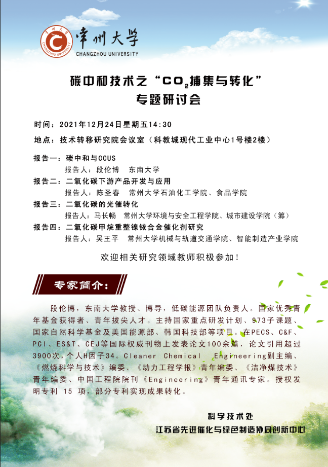 碳中和技術(shù)之“CO2捕集與轉(zhuǎn)化”專題研討會