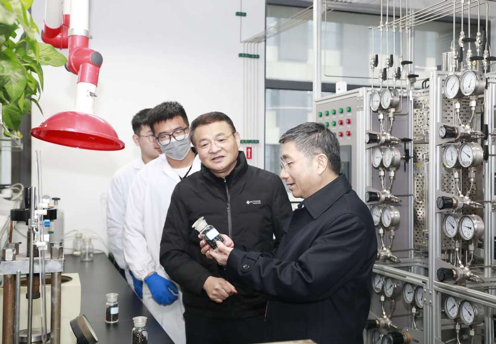 江涌一行實(shí)地考察了國(guó)家級(jí)實(shí)驗(yàn)教學(xué)示范中心、江蘇省先進(jìn)催化與綠色制造協(xié)同創(chuàng)新中心、綠色催化材料與技術(shù)重點(diǎn)實(shí)驗(yàn)室和中以機(jī)器人產(chǎn)業(yè)學(xué)院,重點(diǎn)問(wèn)詢了學(xué)校大型儀器開(kāi)放共享管理機(jī)制運(yùn)行,詳細(xì)了解了學(xué)校的發(fā)展歷程、人才培養(yǎng)、科學(xué)研究、社會(huì)服務(wù)等領(lǐng)域取得的發(fā)展成果。他表示,常州大學(xué)作為一所多學(xué)科協(xié)調(diào)發(fā)展、具有產(chǎn)學(xué)研緊密結(jié)合辦學(xué)特色的高水平大學(xué),近年來(lái)在支撐服務(wù)地方經(jīng)濟(jì)社會(huì)高質(zhì)量發(fā)展、石油石化行業(yè)轉(zhuǎn)型升級(jí)等方面取得了顯著成績(jī),希望學(xué)校再接再厲,踔厲奮發(fā),在新征程上展現(xiàn)更大作為、實(shí)現(xiàn)更大突破。 江涌強(qiáng)調(diào),在當(dāng)前高等教育戰(zhàn)略布局調(diào)整、江蘇打造具有全球影響力的產(chǎn)業(yè)科技創(chuàng)新中心、常州“新能源之都”建設(shè)的大背景下,學(xué)校要以更高站位加強(qiáng)黨的全面領(lǐng)導(dǎo),堅(jiān)持黨委領(lǐng)導(dǎo)下的校長(zhǎng)負(fù)責(zé)制,落實(shí)立德樹(shù)人根本任務(wù),把習(xí)近平總書(shū)記關(guān)于教育的重要論述精神、關(guān)于江蘇工作的重要指示精神、給江蘇師生回信精神貫穿辦學(xué)治校、人才培養(yǎng)全過(guò)程各環(huán)節(jié);要以更實(shí)舉措深化內(nèi)涵建設(shè),加強(qiáng)化學(xué)工程與技術(shù)、石油與天然氣工程等能源化工優(yōu)勢(shì)特色學(xué)科建設(shè),積極構(gòu)建“國(guó)內(nèi)有地位、國(guó)際有影響”的能源化工學(xué)科群,加快建設(shè)國(guó)家級(jí)示范性專(zhuān)業(yè)特色學(xué)院、現(xiàn)代產(chǎn)業(yè)學(xué)院、創(chuàng)新創(chuàng)業(yè)學(xué)院;要以更大作為服務(wù)高質(zhì)量發(fā)展,圍繞服務(wù)國(guó)家發(fā)展的戰(zhàn)略需求,用好石油系統(tǒng)的寶貴資源,著力打造集基礎(chǔ)研究、應(yīng)用開(kāi)發(fā)、成果轉(zhuǎn)移一體化的創(chuàng)新鏈條,加快推動(dòng)更多科技創(chuàng)新成果轉(zhuǎn)化,助力區(qū)域產(chǎn)業(yè)科技創(chuàng)新中心建設(shè);要以更強(qiáng)責(zé)任維護(hù)校園安全穩(wěn)定,對(duì)校園消防安全、實(shí)驗(yàn)室及?;钒踩?、建筑施工安全、食品衛(wèi)生安全等開(kāi)展全方面、全覆蓋、常態(tài)化大排查、大整治,全面加強(qiáng)學(xué)校安全教育、培訓(xùn)和演練,持續(xù)實(shí)施關(guān)愛(ài)青少年心理健康“潤(rùn)心”行動(dòng),全力維護(hù)師生安全和教育穩(wěn)定大局。
