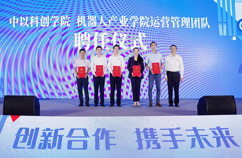 “以色列本·古里安大學(xué)項(xiàng)目制課程”簽約儀式 作為活動(dòng)的重要環(huán)節(jié),中以科創(chuàng)學(xué)院、機(jī)器人產(chǎn)業(yè)學(xué)院第一屆理事會(huì)會(huì)議在與會(huì)領(lǐng)導(dǎo)嘉賓、兄弟院校的共同見(jiàn)證下召開(kāi)。會(huì)議審議通過(guò)了首屆理事會(huì)成員名單、運(yùn)營(yíng)團(tuán)隊(duì)成員名單、理事會(huì)章程等相關(guān)文件。廣東以色列理工學(xué)院專(zhuān)程為中以科創(chuàng)學(xué)院、機(jī)器人產(chǎn)業(yè)學(xué)院發(fā)來(lái)賀信,校長(zhǎng)助理裔傳萍博士代表學(xué)校宣讀賀信,祝愿學(xué)院未來(lái)發(fā)展再攀高峰,再創(chuàng)輝煌。