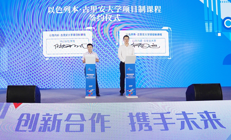“中以國(guó)際青年創(chuàng)新孵化項(xiàng)目”啟動(dòng)儀式 大會(huì)還舉行了“以色列本·古里安大學(xué)項(xiàng)目制課程”簽約儀式,持續(xù)深化與以色列本·古里安大學(xué)項(xiàng)目制課程合作。