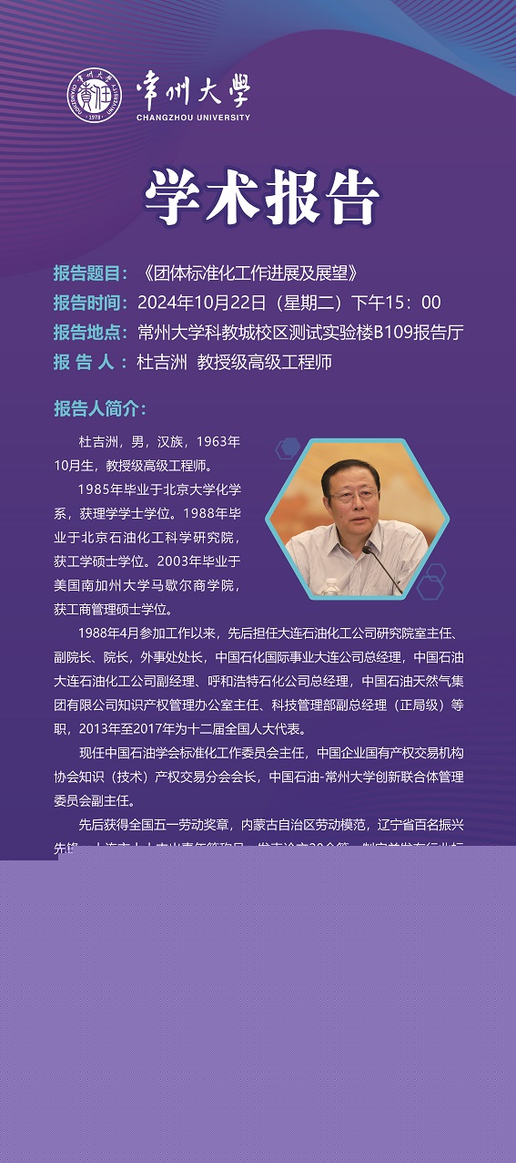 | 【學(xué)術(shù)報(bào)告】10月22日學(xué)術(shù)報(bào)告—杜吉洲教授級高級工程師 |
