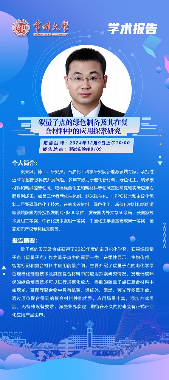 | 【學(xué)術(shù)報(bào)告】12月9日學(xué)術(shù)報(bào)告—史春風(fēng)研究員 中石化石油化工科學(xué)研究院 |