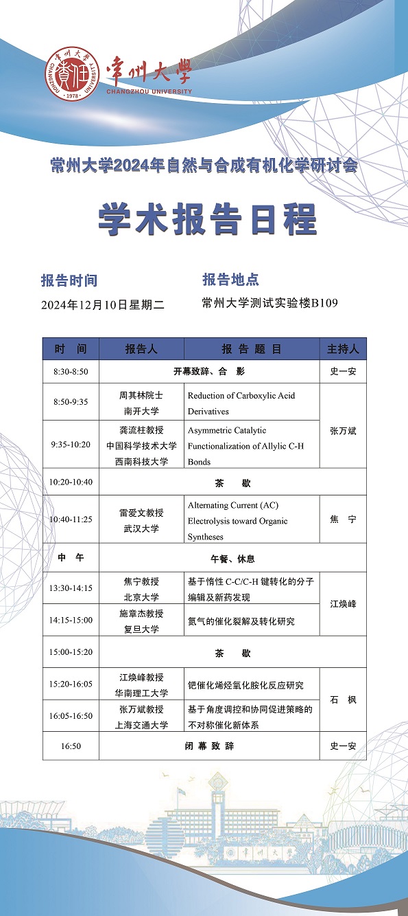 | 【學(xué)術(shù)會(huì)議】常州大學(xué)2024年自然與合成有機(jī)化學(xué)研討會(huì) |