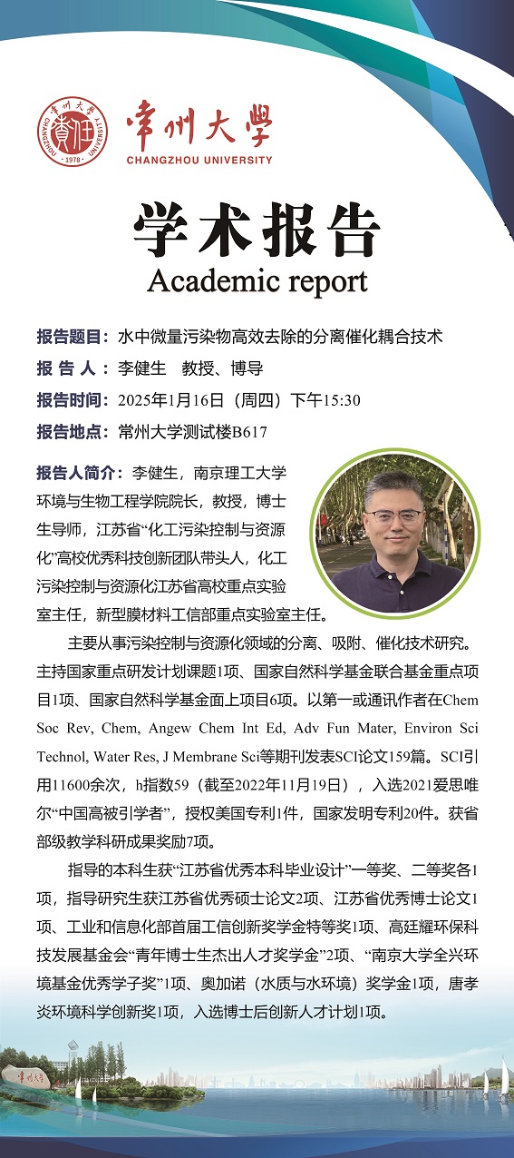 【學(xué)術(shù)報(bào)告】1月16日學(xué)術(shù)報(bào)告—李健生教授 南京理工大學(xué)