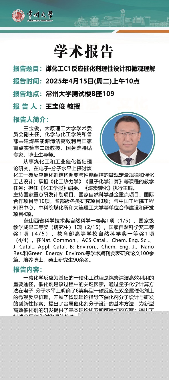 【學術(shù)報告】4月15日學術(shù)報告—王寶俊教授 太原理工大學
