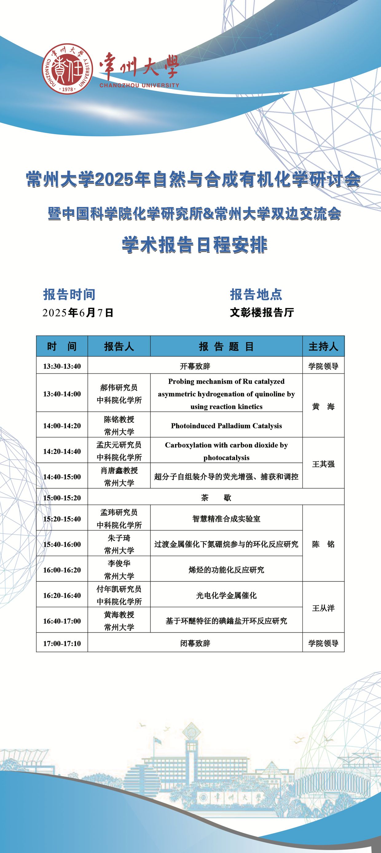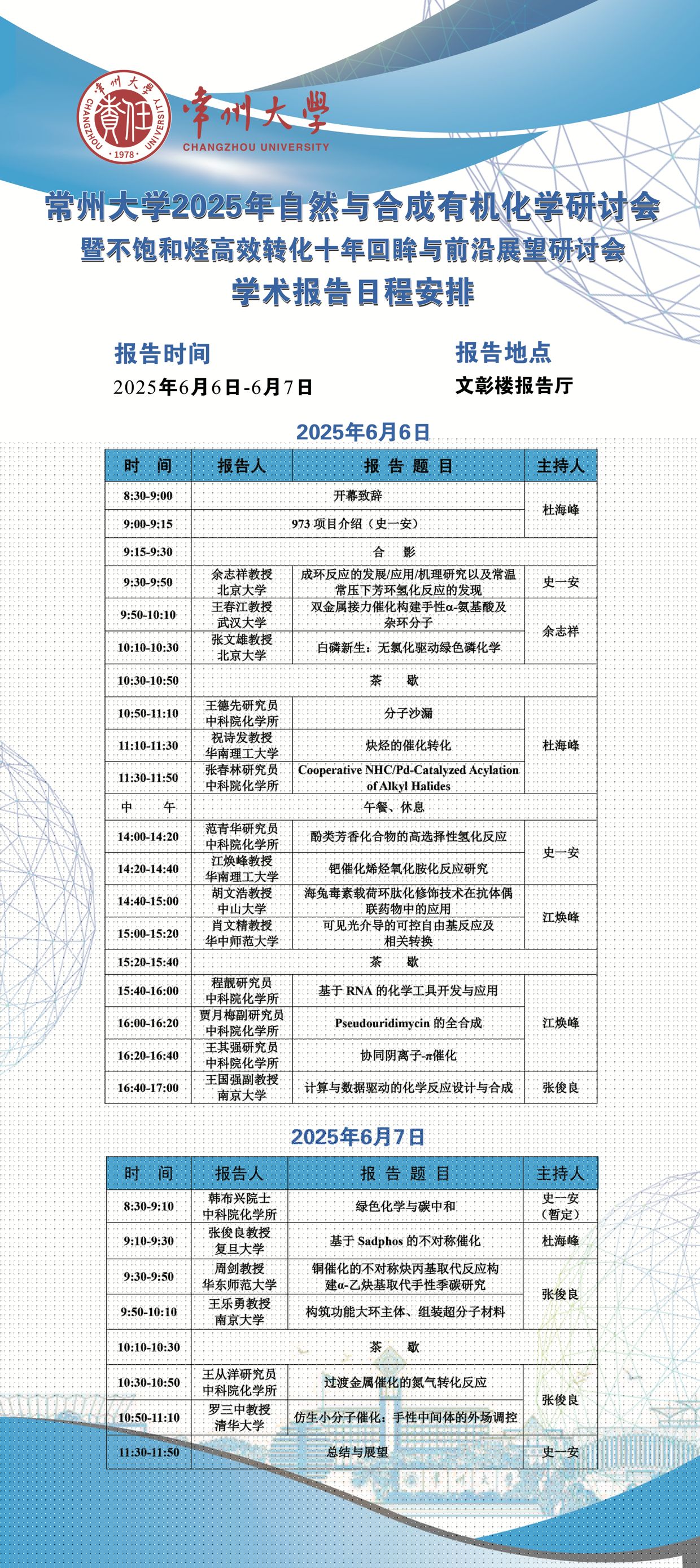 | 6月6日-7日(石化學(xué)院)常州大學(xué)2025年自然與合成有機(jī)化學(xué)研討會(huì) |