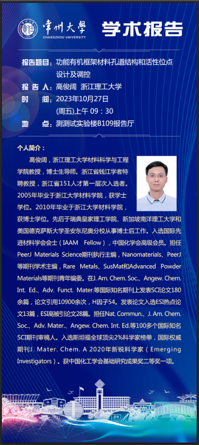 【學(xué)術(shù)報告】10月27日學(xué)術(shù)報告——高俊闊教授,浙江理工大學(xué)